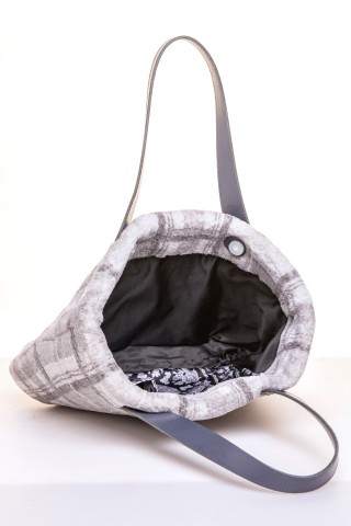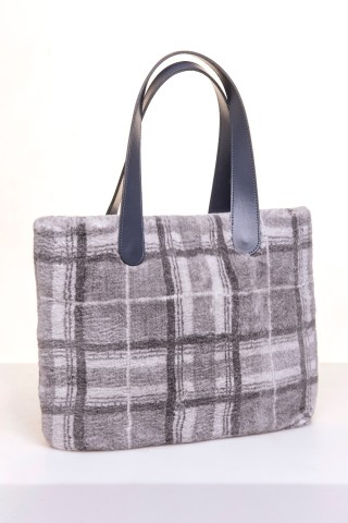 Borsa modello Luana in lapin rex grigio stampato con manici in pelle 43x28x9