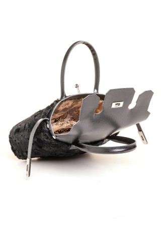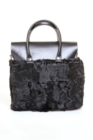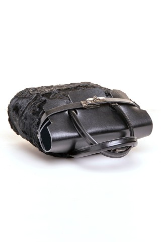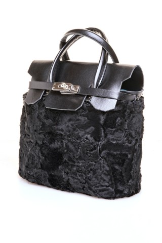 Borsa in parti di pelliccia di visone demibuff, con doppi manici.