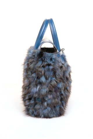 Borsa in parti di pelliccia di visone color mogano, modello sportina con dettaglio.