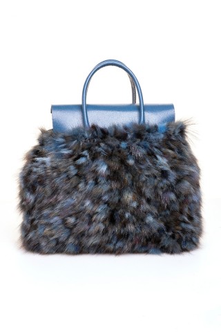 Borsa modello Martina piccola in parti di visone demibuff mogano con manico in eco pelle.