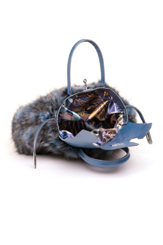 Borsa in lapin con bordo in mongolia, modello shopper con doppio manico.